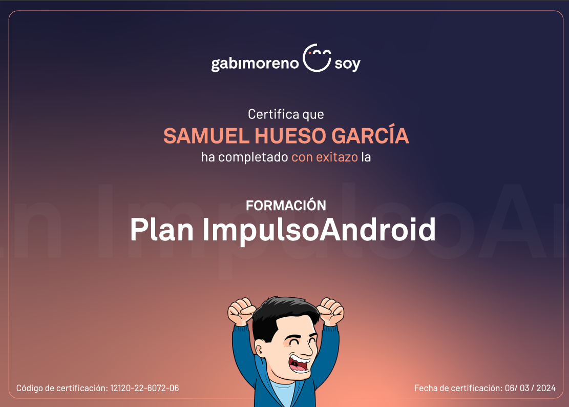 Soy desarrollador Android nativo con experiencia en Kotlin, utilizando las tecnologías más actuales y siguiendo los principios de clean code. He estado en el mundo de la programación durante aproximadamente 4 años, habiendo estudiado un grado medio en Sistemas Microinformáticos y Redes (SMR) y un grado superior en Desarrollo de Aplicaciones Multiplataforma (DAM) y ahora trabajando con lo que me apasiona... ¡ Android !